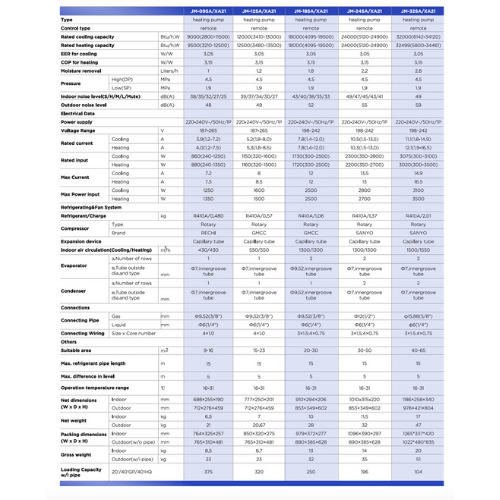• Cooling/Heating Capacity: 18,000 BTU / 3.5 kW